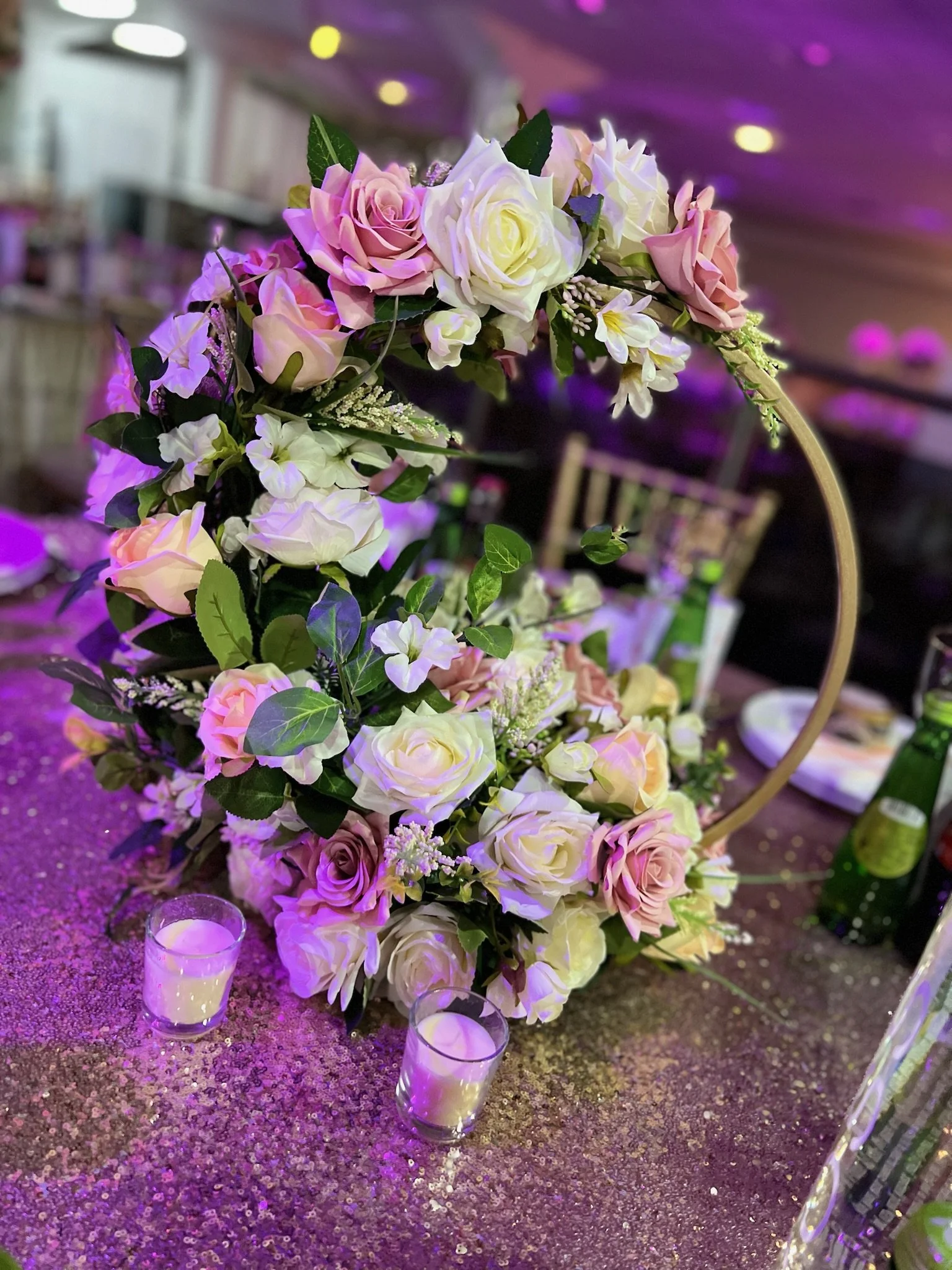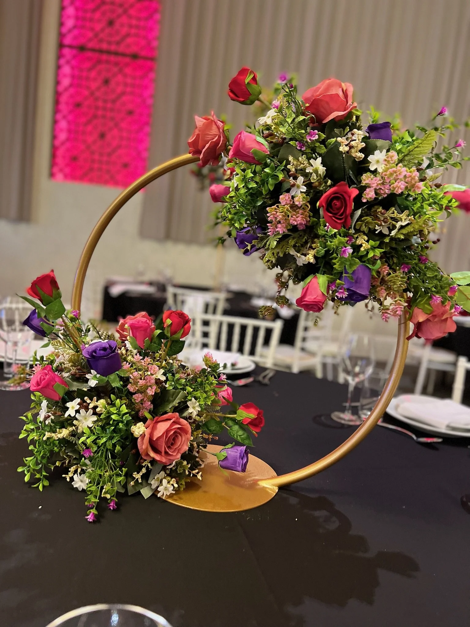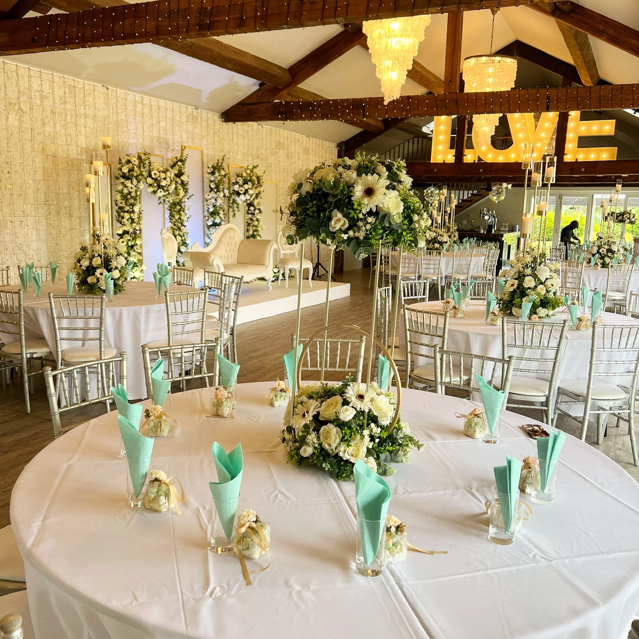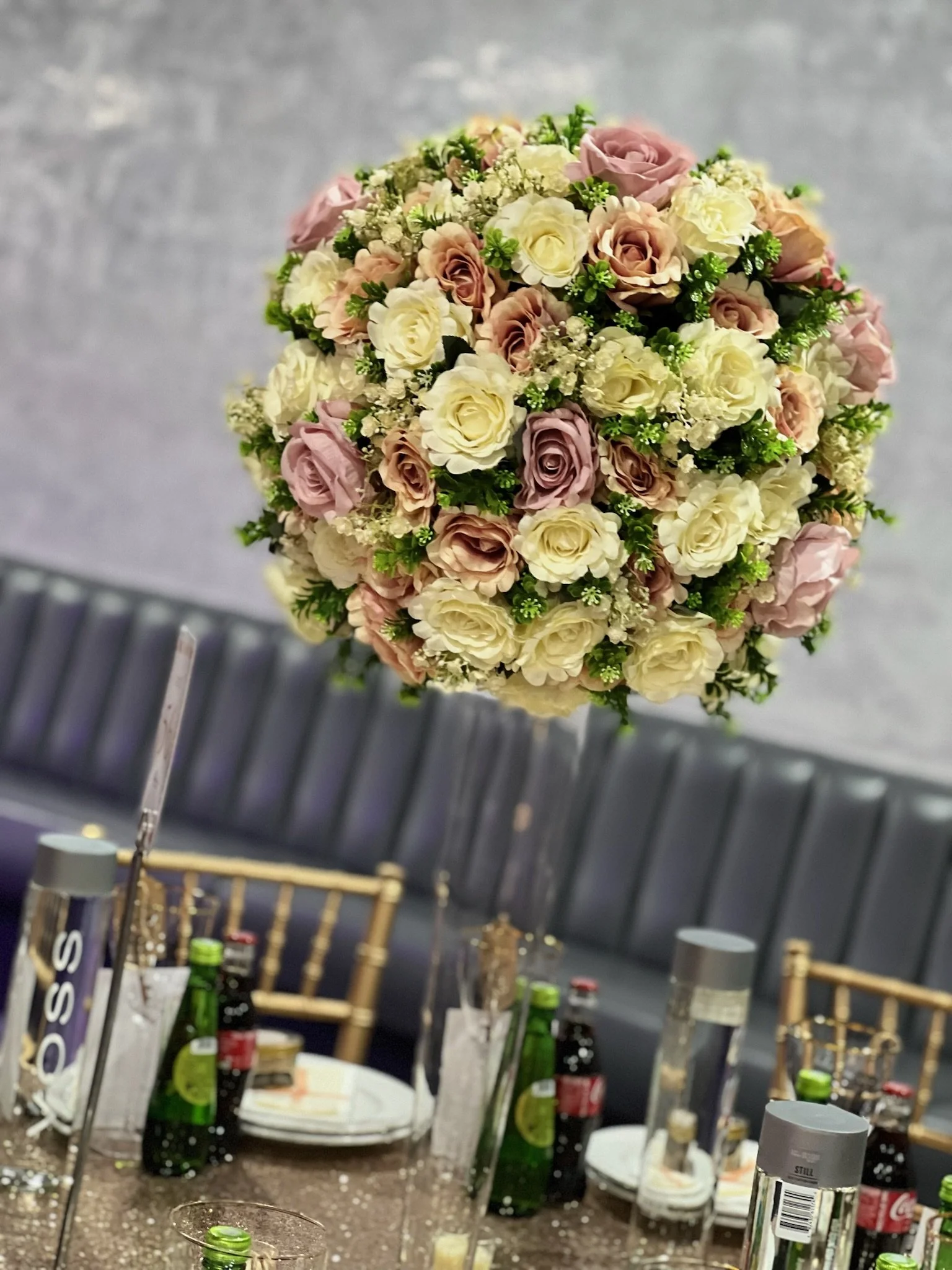 Whether you're envisioning timeless floral arrangements, modern statement pieces, or something uniquely tailored to your theme, our team works closely with you to create centrepieces that elevate the atmosphere and leave a lasting impression on your guests.